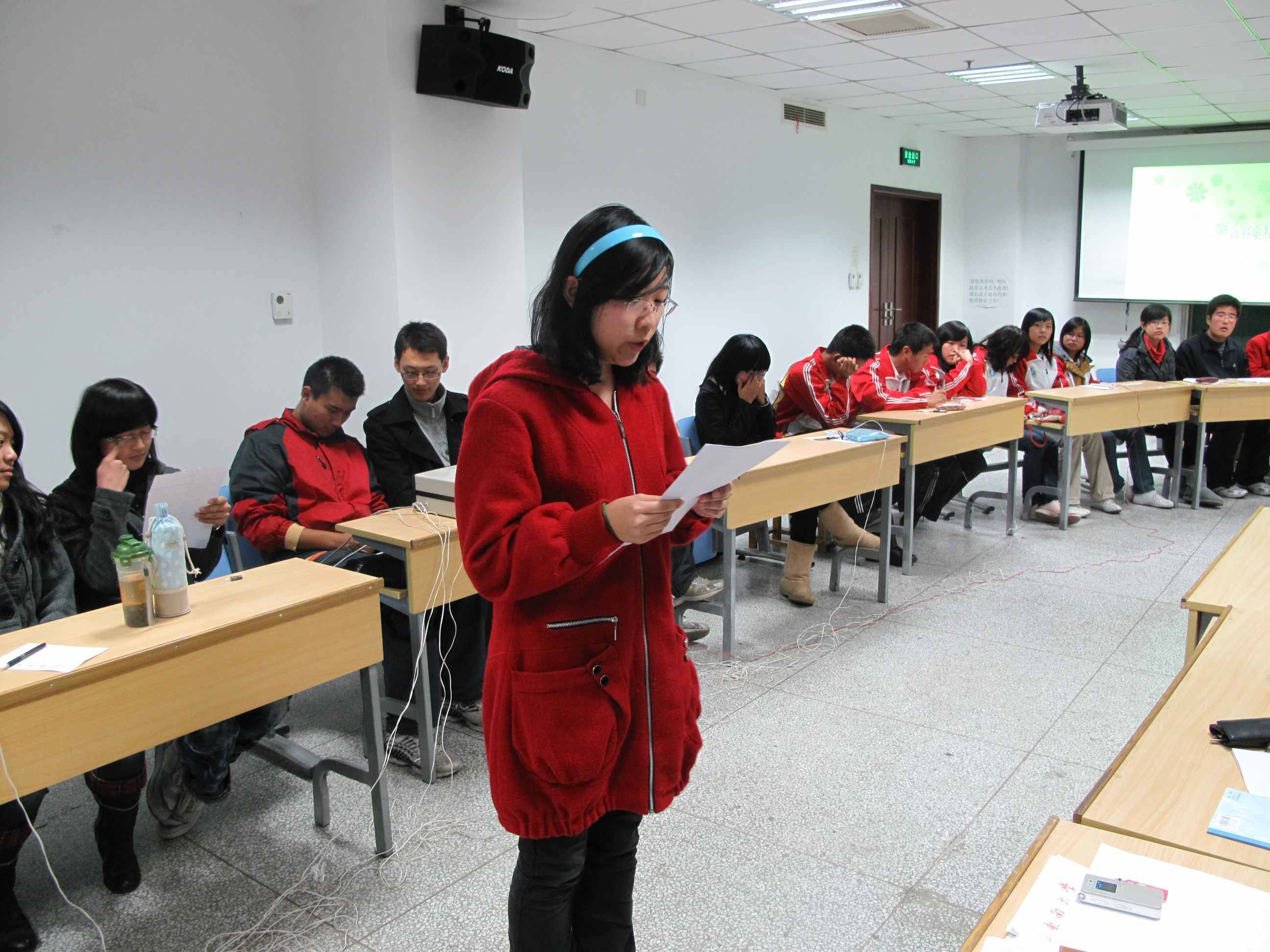 中场休息环节,四名代表分别介绍了党的先进分子事迹,同学们深深为党员的先进事迹所感染,他们热情的脸庞、坚毅的眼神,体现了他们向党的决心。