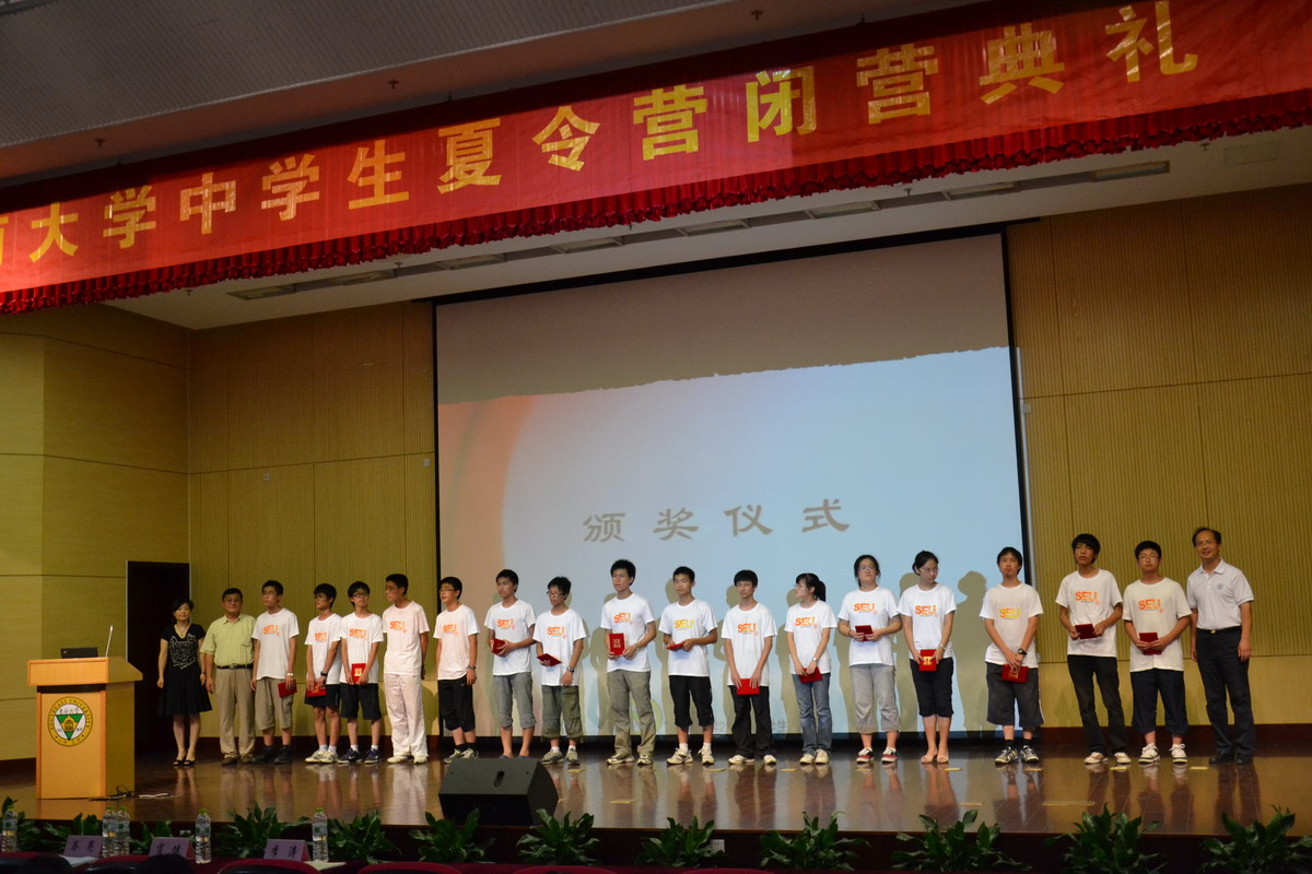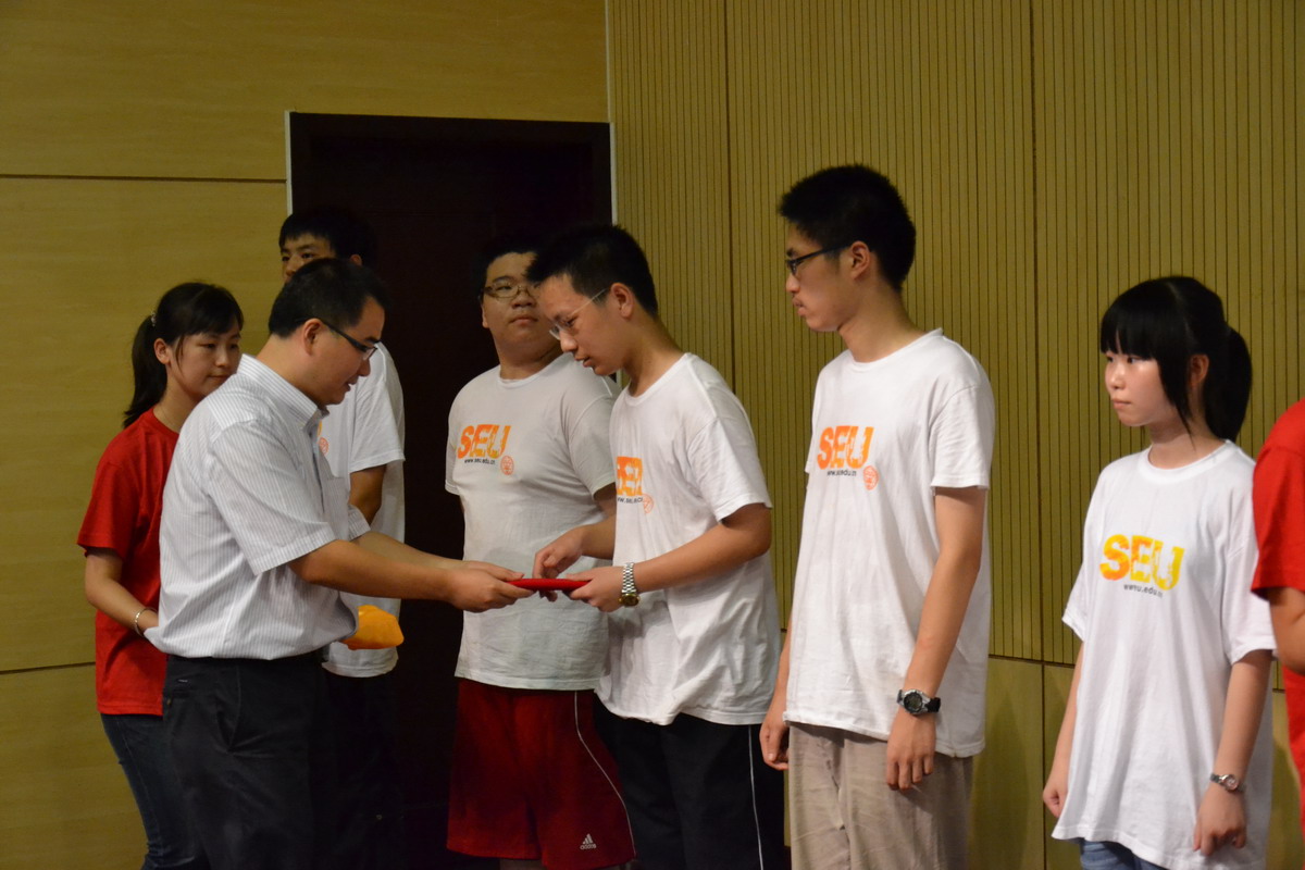7月30日下午,2011年中员工夏令营闭营典礼在九龙湖润良报告厅举行。员工处副处长兼招生工作办公室主任蔡亮、化学化工公司党委书记肖健、物理系党委书记高嵩、数学系党委书记李涛出席了闭营典礼。会议由数学系党委副书记宋晓燕主持。