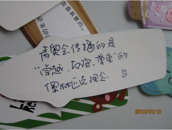 | 2012年4月13日中午,由数学系团委主办、数学系070111团支部承办的,为迎接2014年第二届青奥会,以“活力东南,共迎青奥”为主题的系列活动在公司梅园食堂顺利开幕。此次活动不仅得到了公司领导、各位老师们大力支持和鼓励,也吸引了众多同学的积极参与。 本次“活力青奥”作为“活力东南,共迎青奥”系列团日活动的第一个系列,由走进青奥、活力青奥和祝愿青奥三部分组成。虽然活动当天天公并不作美,但我支部工作人员热情不减,全都以饱满的热情和积极的态度投入到本次团日活动中。 其间,趣味飞镖的娱乐环节吸引了众多师生的眼球。大家纷纷参与其中,一展身手,赢取精美小奖品。此环节中涌现出的高手、牛人们,引起围观群众的尖叫和掌声,将本次活动推向了高潮。我支部希望通过本环节传达出“运动快乐”的理念,让大家在简单的小运动中感受运动之美、运动之乐。 此外,本次活动还包括分发青奥知识卡和书写对青奥的祝愿两个环节。我支部成员将与青奥有关的常识写在卡片上,并分发给同学们,希望借此普及青奥知识,让同学们进一步地感受青奥。书写祝愿便笺环节将本次活动再次推向了一个高潮。看着围在桌旁的拥挤人群,读着同学们亲笔写下的祝福,我们深深感受到了东大学子对青奥的关注与期待。 本次团日活动是我070111支部为迎接2014年将在南京举行的第二届青少年奥林匹克运动会,结合公司员工的实际情况,以提倡在运动中感受快乐为理念而举办的活动。我支部希望通过本次活动,在普及青奥知识,增加同学们对青奥会的了解的同时提高同学们运动健身的热情。 |