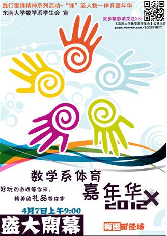 2012年4月7日上午,由数学系团委主办,数学系员工会承办的数学系体育嘉年华在梅园田径场盛大开幕。数学系本科生各班级积极参与了此次活动,数学系团委书记袁煜昶老师、辅导员张涌老师也亲自到场助阵。 早上8点45分,各班级到梅园田径场集合。9点整,体育嘉年华开幕式正式开始。嘉年华的第一个重头戏是考验参赛者凝聚力的集体项目----拔河比赛。参赛者以班级为单位,每个班挑选10男5女进行淘汰赛。整个拔河赛场人声鼎沸,气氛热烈。口令声,加油呐喊声此起彼伏,响成一片。最终大二2班以绝对优势胜出。 接下来是集体项目与个人项目同时进行。集体项目是由各班班委组队参加的,分别为:“飞镖接力”和“N人N+1足”。其中,最有看点的是“N人N+1足”,比赛要求N人站成一排,参赛者的相邻两腿上绑绳跑完50米,以时间长短进行排名。这个项目极大地考验了参赛者之间的默契与协调性,同时具有极强的观赏性。各班班委齐心协力,都顺利地完成了比赛。 相比集体项目而言,个人项目更加丰富多彩。有考验人思维的“智力数独”,挑战人记忆力的“我爱记数字”,还有集技巧与应变能力于一体的“魅力魔方”。位于田径场中间的是“小型保龄球”,参赛者个人参赛,用网球于20米以外击倒摆放好的可乐,击倒的可乐归参赛者。这个游戏奖品丰厚,受到了同学们的极大欢迎。还有“减肥跳绳”,“踢毽子”,“扳手腕”,“我爱袋鼠跳”,“小东飞镖”等各种趣味多多的小游戏。“苹果之恋”要求组队参赛,现场一男一女自由组队。两组对抗,两男生站于指定圈内,背对背,手挽手,两女生手持苹果站于圈外,四人成180度,女生不动脚,能吃到自己同伴手中苹果的获胜。 中午12点,本次数学系体育嘉年华圆满结束。值得一提的是,本次体育嘉年华除了为同学们提供了种种丰富多彩的趣味游戏外,还给参赛者精心准备了丰盛的精美奖品。小到棒棒糖,大到4G优盘,还有精美挂件,迷你玩偶,可爱抱枕等。参赛者靠参加游戏积分兑奖。整个操场上处处活跃着同学们快乐的身影。每个同学都乐在其中,都拿到了奖品。本次活动在同学中引起了很好的反响,同学们在欢乐的气氛中锻炼了身体,同时也增加了班级的凝聚力,起到了很好的效果。 |