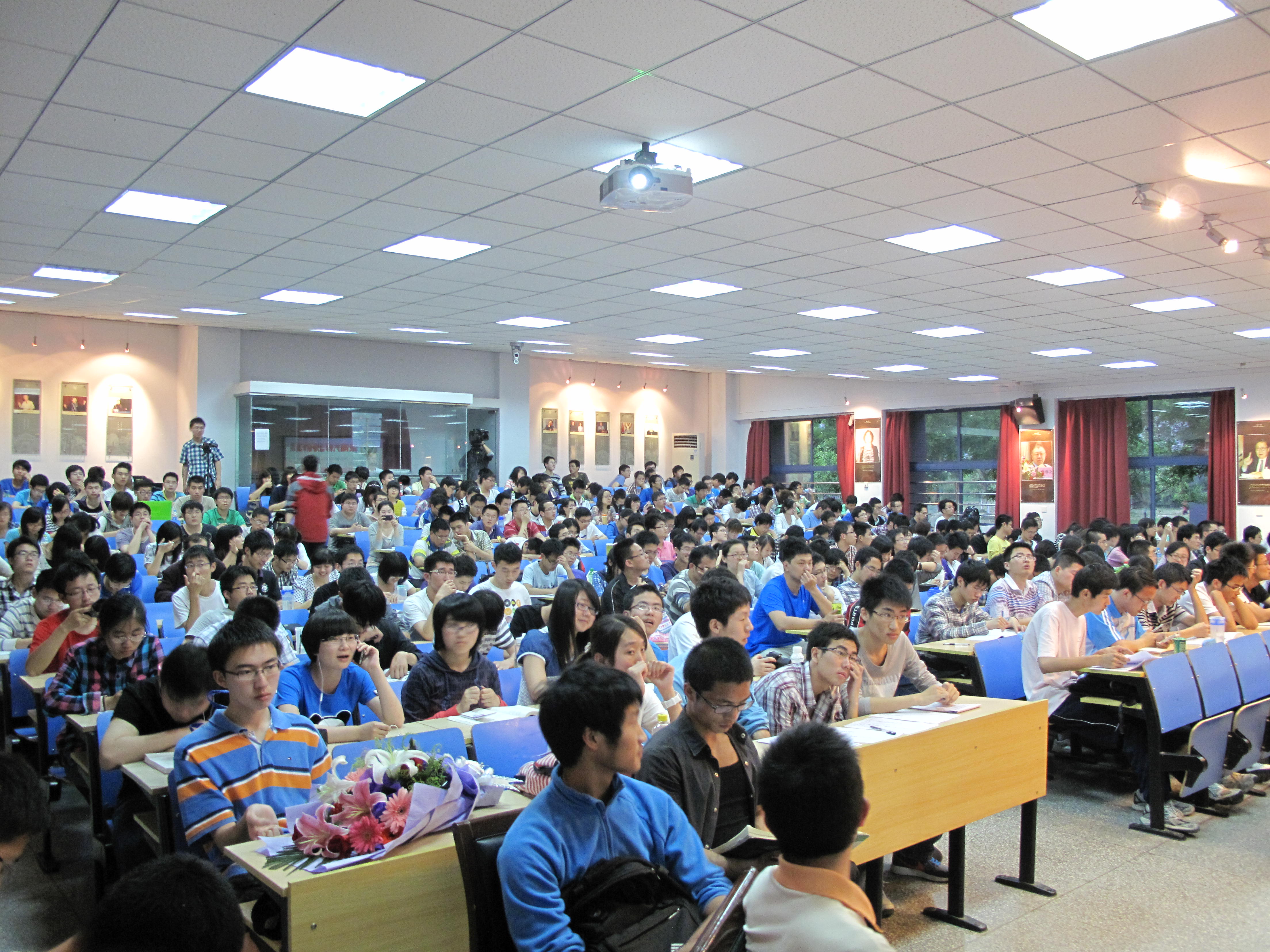 | 2012年5月4日,由中国科公司席南华院士主讲的“数学――简单与高深”讲座在九龙湖校区教一111人文报告厅成功举行。该讲座由太阳成集团tyc33455cc数学系、太阳成集团tyc33455cc教务处、太阳成集团tyc33455cc文化素质教育中心三方联合主办,共青团太阳成集团tyc33455cc数学系委员会承办,且被同时列入“太阳成集团tyc33455cc课外研学讲座”和“太阳成集团tyc33455cc文化素质教育讲座”系列。 席南华,中国科公司院士,中国科公司数学与系统科学研究院研究员,是国内知名数学家。席院士籍贯湖南祁东,1963年生于广东省英德,1981年毕业于湖南怀化师范专科公司(现怀化公司)数学科,1985年、1988年先后获华东师范大学数学系硕士、博士学位,2009年当选中国科公司院士。所获主要奖项有国家自然科学奖二等奖、陈省身数学奖、晨兴数学奖(全球华人数学奖)银奖。 讲座于19点整开始,席院士在听众的掌声中走进会场,他身着简单深色上衣,面带微笑,同时向在座师生点头问好。整个演讲过程中,席院士看似表情严肃,但却乐于和听众们沟通,不消细听便可发现,他的言语相当诙谐幽默,常常使用生动比喻使所要表达的思想转化为画面输入听众大脑。即使考虑到在场师生数学知识储量的差异,席院士有时也不免谈到一些较深层次的数学问题,但席院士深入浅出的演讲吸引了大家,同学们都在尽力捕捉席院士的思路,尽力体会个中蕴含的奥秘。 在最后的问答环节,同学们踊跃提问,所提问题各有独特想法,有请教建议的、有讨论数学经验的、也有发出质疑的。一时间,会场气氛融洽,不时一阵轻快的欢笑……讲座圆满结束,全体起立,席南华院士在太阳成集团tyc33455cc师生的热烈掌声中缓缓离开会场。 数学系举办本次讲座向公司师生传达数学大师的独特思想,并充分展示了数学的魅力,在今后的科研与学习过程当中起到一定的指导作用,在同学当中引起了良好的反响。 |