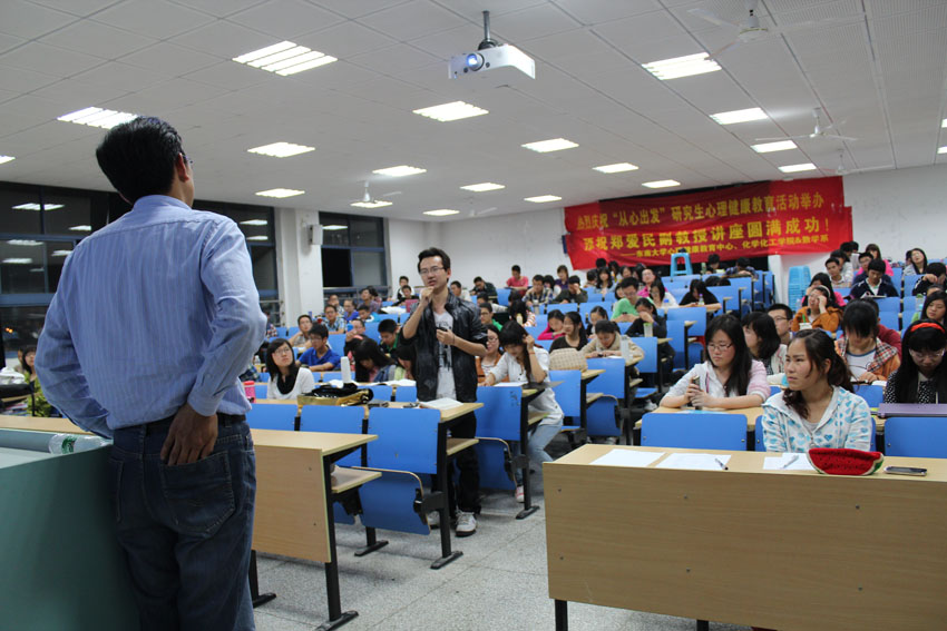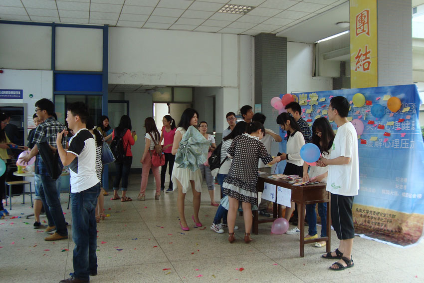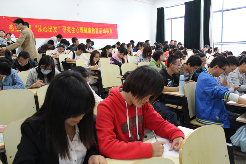 | 2013年5月8日――5月24日,太阳成集团tyc33455cc “从心出发”研究生心理健康教育系列活动得到圆满成功。本次活动由太阳成集团tyc33455cc党委研究生工作部、太阳成集团tyc33455cc化学化工公司、太阳成集团tyc33455cc数学系和太阳成集团tyc33455cc老员工心理健康教育中心主办,太阳成集团tyc33455cc化学化工公司研究生会、太阳成集团tyc33455cc数学系研究生会和太阳成集团tyc33455cc心理健康协会承办,旨在引导员工关注心理健康,培养积极心理,促进心智成熟。 本次心理健康活动以“关注心理健康 缓解心理压力”为主题,活动主要分为三个部分。 5月8日,我们在纪忠楼成功举办了心理测试活动。我们有幸邀请到了数学系党委副书记兼副系主任曹海燕老师、数学系团委书记袁煜昶老师、化学化工公司党委副书记兼副经理陆娟老师和化学化工公司团委书记梅震宇老师为嘉宾。本次活动主要分为心理知识简介和专业心理测试两个环节。首先主持人对抑郁自评量表(SDS)做了指导说明,同时介绍了抑郁焦虑存在的危害及问题,希望同学们高度重视自己的抑郁程度,及时调整自己。然后参加活动的员工认真填写了专业心理测试的问卷,并在主持人的指导下计算出自己的分数,根据分数等级了解自己的抑郁程度,及时的发现问题,解决问题。活动举办后反响热烈,为我们后期活动打下了坚实基础。 5月10日,我们有幸邀请到了中国药科大学郑爱民副教授在教学楼J2-209给大家上了一堂心理课,主题为“在压力下自由呼吸”。郑教授简单介绍了“WHO”身心健康的“三良标准”:良好的个性、良好的人际关系和良好的社会适应,然后重点讲了自我心理调节的三原则,现场同学和老师展开了激烈的讨论,郑教授也耐心的解答了同学们的疑惑与问题。两个小时的讲座,郑教授幽默风趣、知识渊博,赢得了同学们的阵阵掌声和喝彩,全场氛围热烈欢畅。 5月24日,我们在橘园大厅成功举办 525心理健康活动,主要通过两个游戏的方式来缓解员工的压力。第一个游戏是“战胜困难 释放心理压力”,具体的活动形式是:参加活动的同学将烦恼写在气球上,并使劲打气球,直到把气球打爆。该游戏的寓意是战胜困难,打倒烦恼。第二个游戏是“艺术表达 分享你我真情”,具体的活动形式是:参加活动的同学在便利贴上写下你的心情或困扰的问题或者是对他人的祝福,让其他的同学跟你一起分享或是帮你解决问题。该游戏的寓意是分享真情,共同承担。虽然今天酷暑难耐,但同学们积极参加,现场活动相当热烈! |