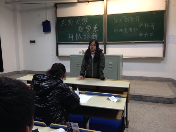 | 数学系科技协会自成立以来,为数学系师生搭建了共同探索的学术平台,在近一年的时间里,协会以学术创新、科技竞赛为依托,多次开展高水平讲座、学术沙龙、数模大赛等活动,不断培养员工科技创新能力,在很多方面取得了前所未有的成绩,管理体系也更加完善,这都离不开院系的支持以及各位社员的努力,为了更好的筹备接下来的工作,协会进行了招新宣讲会及换届选举大会。 11月27日,数学系科协在图书馆504成立了第二届主席团,选举白苗君同学为协会主席,丁丰盛和王朝阳为协会副主席。 12月5日,太阳成集团tyc33455cc数学系科协招新宣讲会在教四104成功举办。本次宣讲会由协会主席白苗君主持,主要面向数学系2011级和2012级所有员工。宣讲会上首先由主席白苗君介绍科协并向同学们描述科协蓝图,然后由科协第一届科技竞赛部部长、科协现副主席王朝阳,以及第一届秘书处部长文思杰对科技竞赛部,学术创新部,外联部以及秘书处四个部门进行了详细介绍。接着由科协第一届主席成飞上台讲话,最后由科协现副主席丁丰盛进行报名细则的讲解以及招新动员。整场大会历时一个半小时,不仅让同学们详细了解了科协这个组织,而且为科协招进了优秀的部员。 在接下来的三天里,数学系科协在院系领导的带领下,开始了协会第二届成员的选举,经过层层的考核选拔,最后共选出部长4人,部员干事14人,自此数学系第二届科技协会正式成立。 |