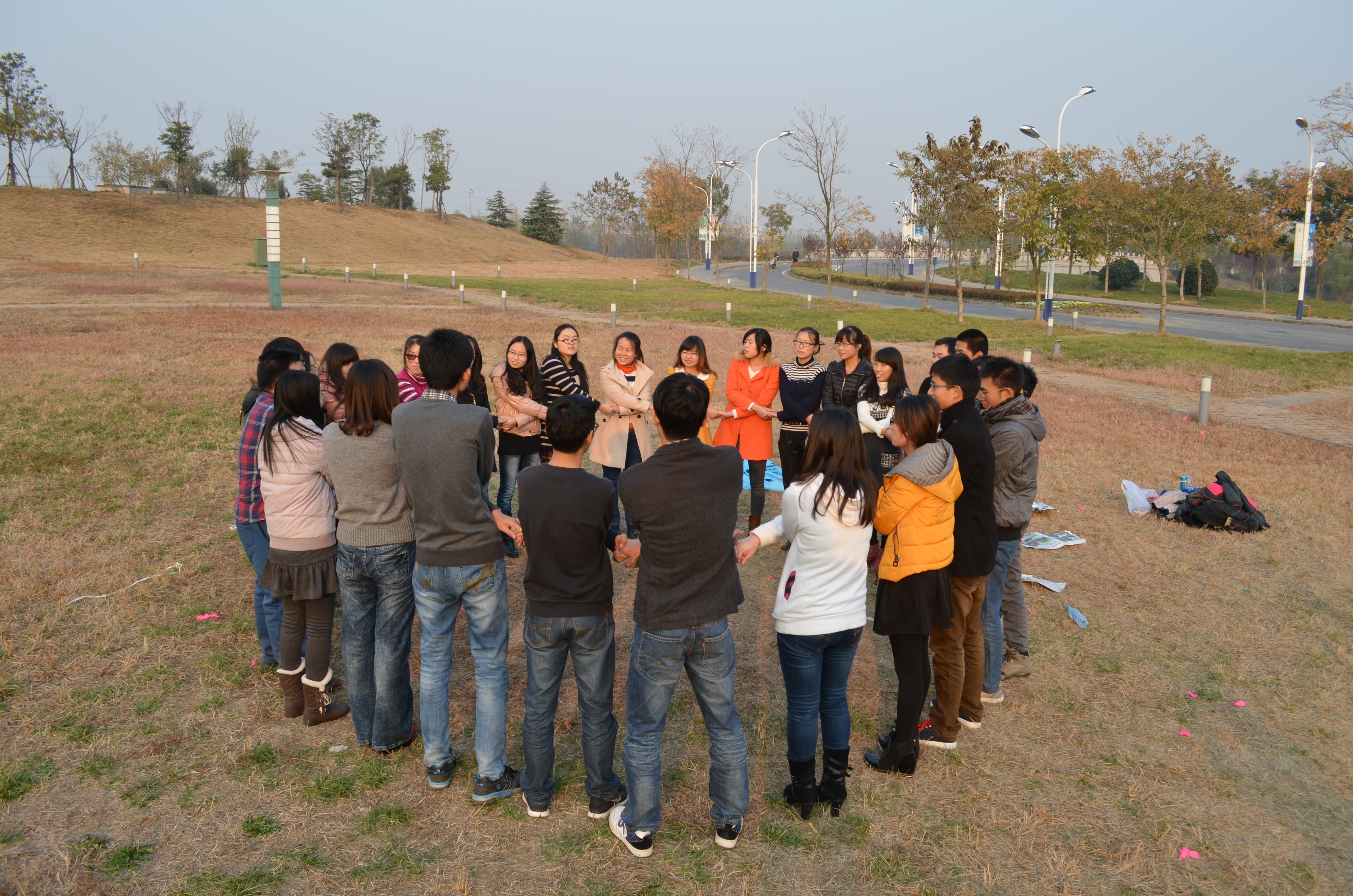 | 2013年12月1日星期日,由数学系团委、研究生会主办的“让梦领航”素质拓展活动在九龙湖“情人坡”举行,我系研究生一年级全体成员参加了此次活动。 本次活动主旨在通过,提高研究生的综合素质,加强团队的凝聚力,也为他们提供了一个相互交流和学习的机会,为今后梦想的顺利实现奠定坚实的基础。 素拓活动在下午15:00开始。首先,在员工干部的带领下,我系同学进行了一系列的安排。所有研究生分成四组,每组分别选出队长、队名、队歌、口号,之后,我们开始了正式的训练。 训练第一个项目是“背靠背起立”,每队先派出四名队员,背靠背坐在地上。 两人双臂相互交叉,合力使双方一同站起。共三次机会,每次起立限时一分钟。若一分钟内未起立,则失去此次机会。三次均未站起,则失败,被淘汰。若成功,则每队每次增加一人继续比赛。组织者在旁观看,选出人数最多且用时最少的一组为优胜。接下来,又进行了“心心相印”和“群龙取水”两个训练项目,通过这两个项目, 同学们深刻体会到,只要相信自己,乐观接受挑战,无论什么困难都能克服。 在几个分组竞技项目之后,我们的组织者别出心裁,又设计了几个集体项目。“解手链”项目培养团队合作为目的,同时也传到给每个成员这样的一个信息,看似简单的工作,还是要尽心完成,才能达到效果;而“摆字母”更将这个团队凝聚为一个整体。 本次活动提高了研究生的整体战斗力,培养了他们的组织交际能力和实践能力,提升了团队合作精神,增强了团队协作意识。作为“东大梦”系列活动之一,本次活动起到了很好的团队建设作用,为了进一步梦想的实现奠定了基础。 |
