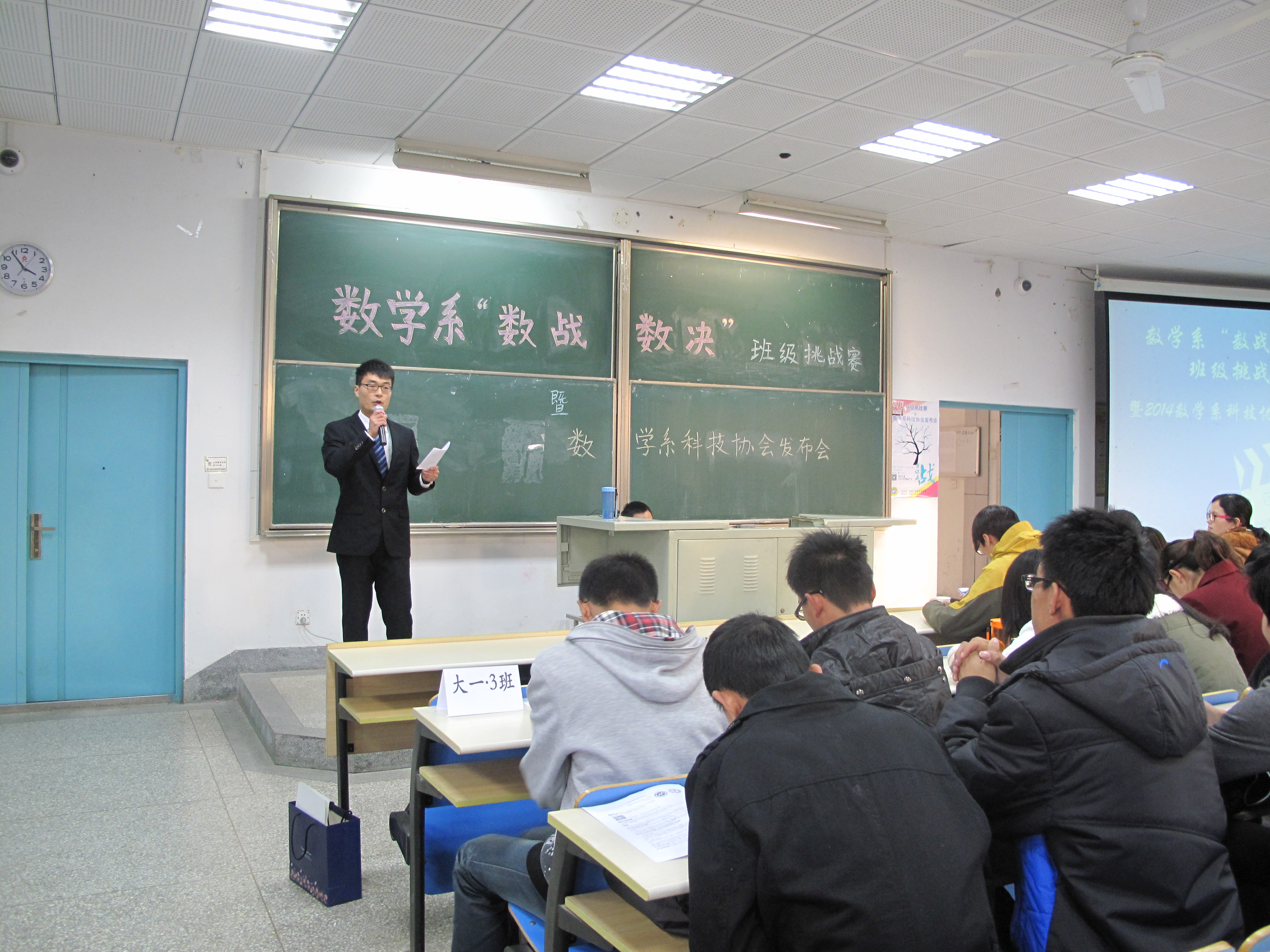 2014年12月12号下午3点50,由数学系科技协会主办的“数战数决”班级挑战赛暨2014科协发布会在J1-211圆满举行。数学系党委副书记曹海燕老师,团委书记袁煜昶老师,和辅导员王靖老师出席了本次活动。 本次活动由两部分组成。前半场由科协副主席陈康同学负责主持进行了2014科协发布会。发布会上,来自2012级的主席梁晓洁同学向我系大一大二全体同学介绍了数学系科协是什么,科协干什么,科协可以给大家带来什么等大家最关心的问题,并结合近期正在进行中的2015年校级SRTP项目申报工作对大一大二的同学们给予了许多提醒和帮助。同时晓洁作为科协代表还正式发布了数学系科协的LOGO,发布了科协资料库网盘,发布了科协的微信平台,同学们纷纷现场拿起手机扫了一下二维码,关注了科协微信平台,并对科协的诸多发布内容报以热烈的掌声。 数学系党委副书记曹海燕老师做了简短而深刻的总结发言,充分肯定了科协工作的努力和付出,对同学们提出自己可以为科协带来什么的问题,引发了同学们深深的思考。最后曹书记对所有数学学子们提出希望,希望大家都要积极培养学术创新和科技竞赛的能力,在科协搭建的师生共同探索的学术平台上实现自我的提升。 简短的发布会后,由科协主办的 “数战数决”班级挑战赛隆重开始。比赛由大一的李园哲和矫文薇两位同学主持,面向大一大二两个年级六个班全员参与,借鉴了江苏卫视“一站到底”的节目形式,开启班级车轮战,诸多数分、高代、C++等主干课知识和部分常识题瞬间让在场所有的参赛选手和观众都沸腾了起来。每题15秒的答题时间空气中充满了紧张的味道,每每一道题答对了,选手所在班级的同学都会报以最热烈的掌声和欢呼声给予支持;而每每答错了,工作人员也会用充气锤狠狠地给予当头一棒以作惩罚,现场爆发出阵阵笑声。一个半小时的激烈角逐后,070141班以明显优势获得了第一名,070143、070142分获第二名和第三名,而大二的三个班级遗憾的获得了优胜奖。团委书记袁煜昶老师现场给获奖班级的代表颁发了荣誉证书,并一起合影留念。 本次活动让同学们在认识科协、了解科协的同学,提高了自我的认知,通过轻松愉快的方式加强了专业知识的学习,同时还增强了班级的凝聚力。希望未来的道路上,数学系科协可以越来越专业越来越强大,也希望数学学子们在追求数学的旅程中,积极的投身于学术创新和科技竞赛的智慧世界里,一站到底! 通讯员:何铭 摄影:张�� |