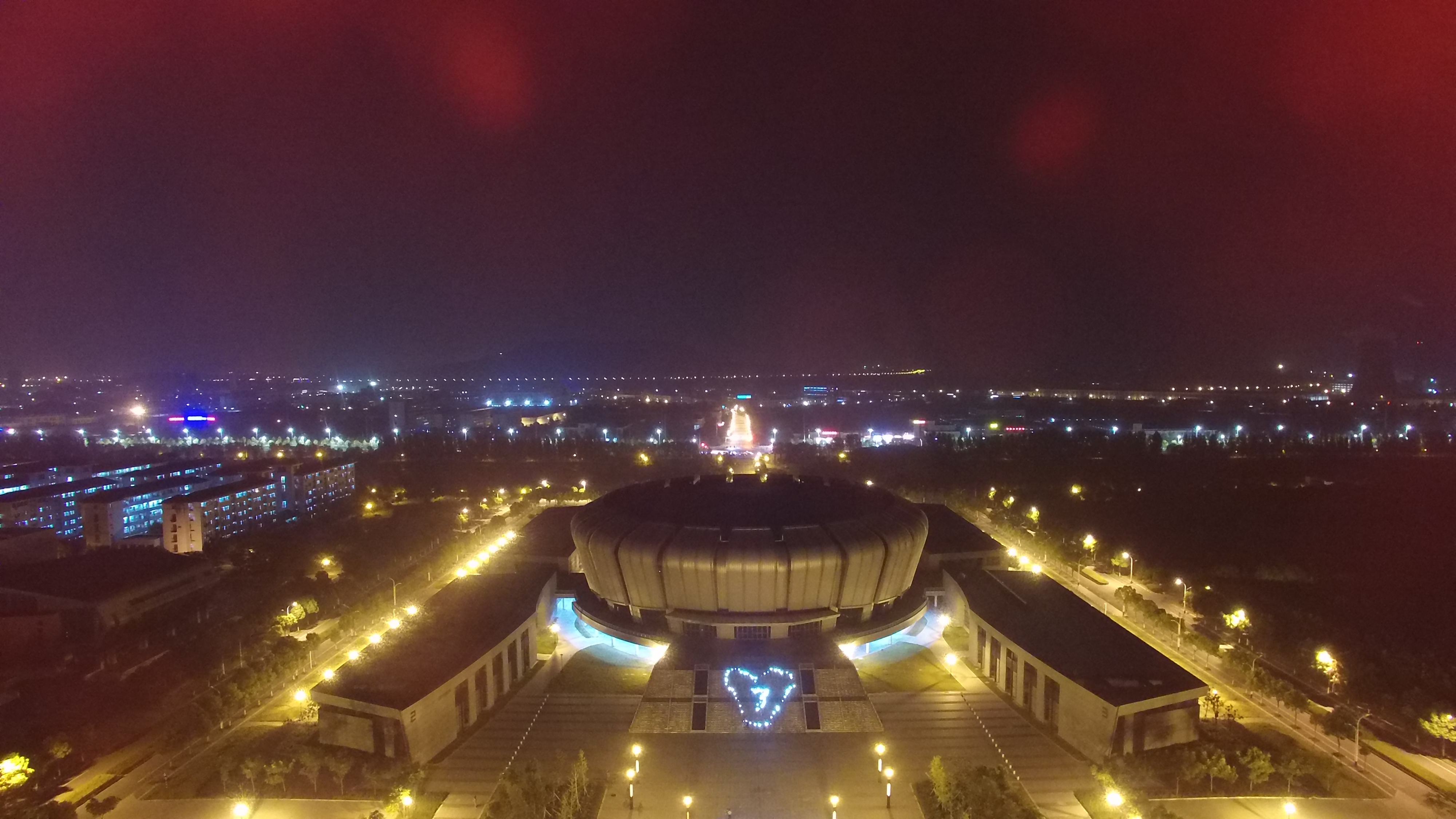 | 数学系15级新生手持电筒组成的7系图形(航拍视角) |
