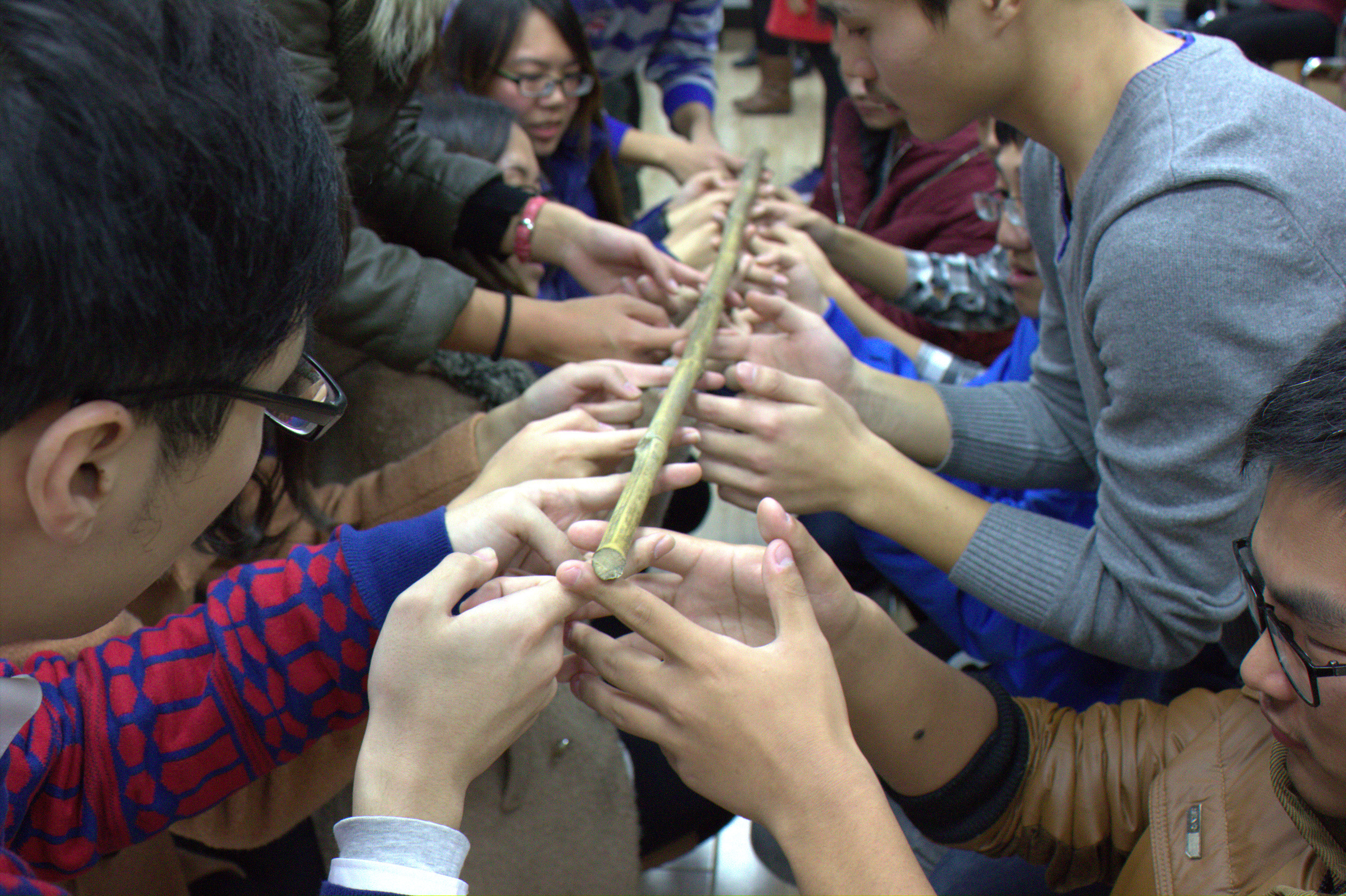 | 大家小心翼翼地呵护竹竿 |