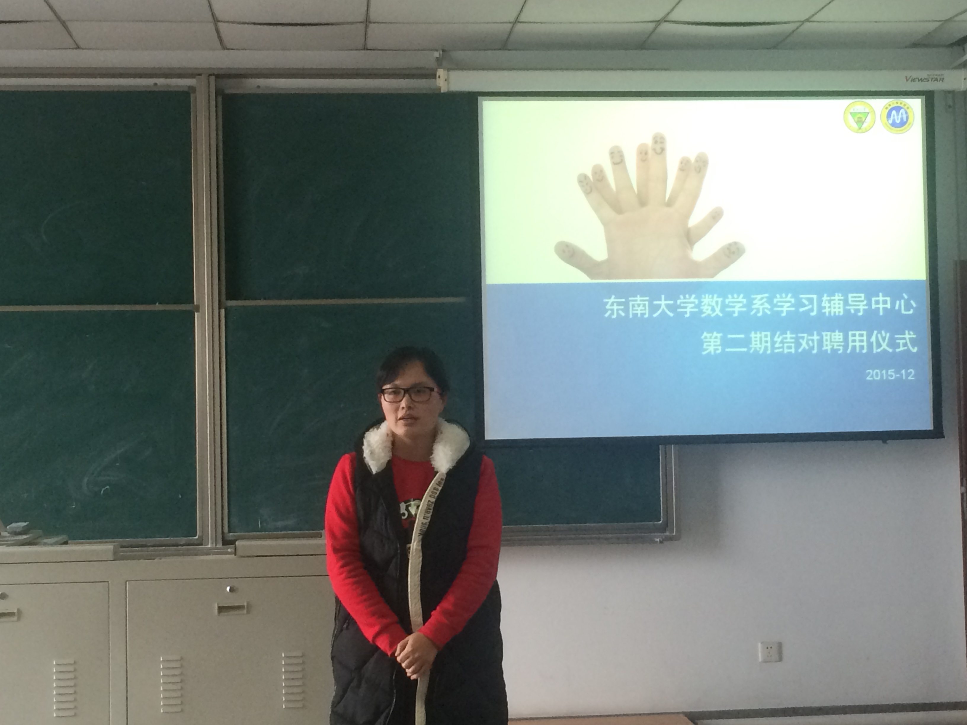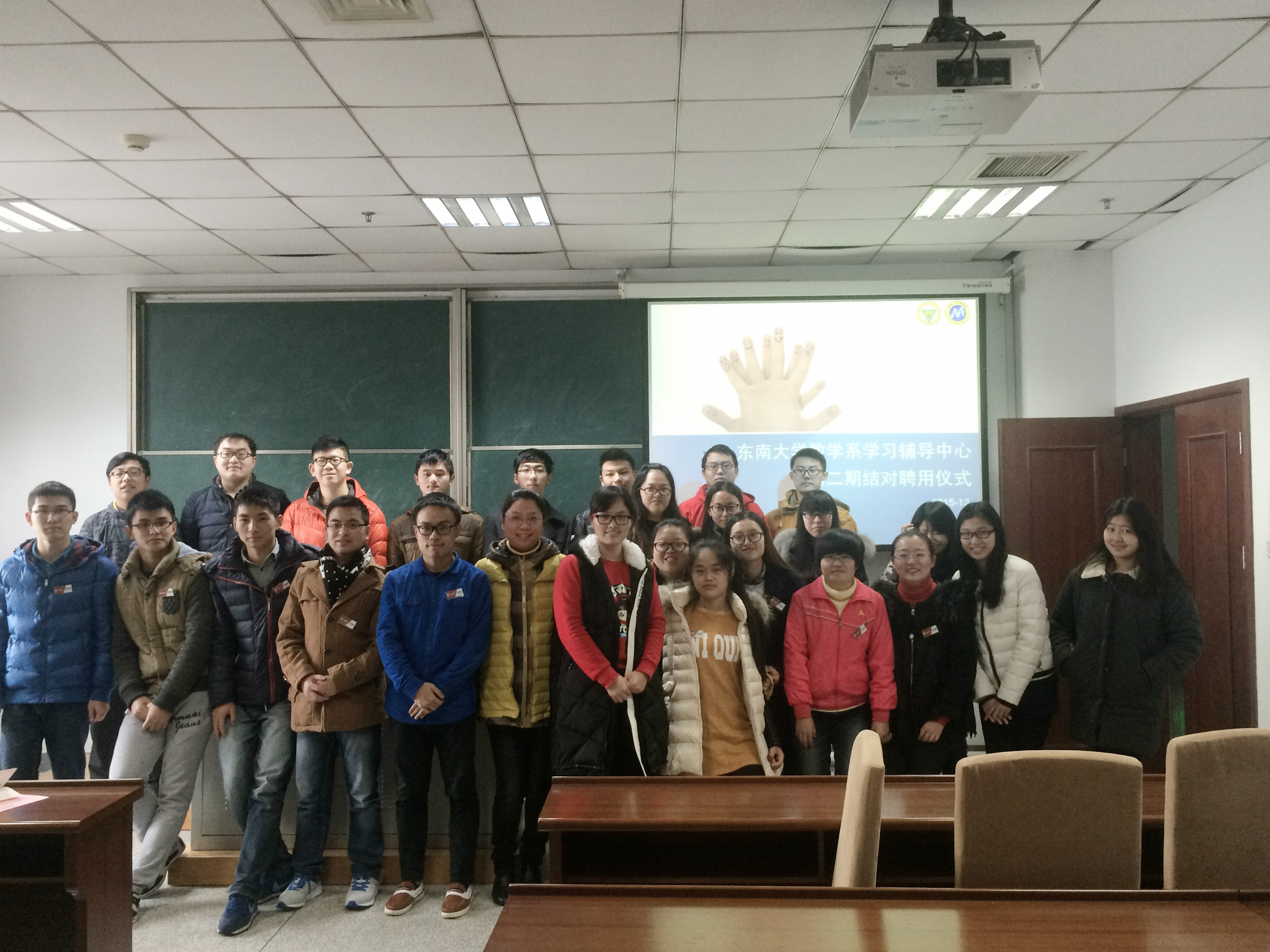 为了更好地促进我系2013级的学风建设,更好地架起学霸与学弱之间学习与情感的桥梁,数学系学习辅导中心第二期结对仪式于2015年12月24日圆满举行。数学系党委副书记曹海燕老师出席结对仪式,系团委书记、本科生第一党支部书记袁煜昶老师为13位辅导讲师颁发聘书和工作牌。 活动自今年12月正式启动,由数学系本科生第一党支部承办。期中考试以后,结合部分员工专业课成绩不是太理想的现状,正式启动了学习辅导中心第二期工程。在经过一段时间关于辅导讲师和学员的招募后,成功建立起“学优生―学困生”一助一的帮扶关系,打造“督学、助学、乐学”的帮扶平台,让每位同学都能学有所长,学有所用。 12月24日中午12时,数学系第一报告厅,学习辅导中心第二期结对仪式正式开始。会上,袁煜昶老师宣读了辅导讲师职责与学员职责,强调了辅导讲师对学员主要以陪同自习的形式开展辅导,通过自己身体力行的学习状态和方法促使学员探寻适合自己的学习方式,并确保在每次辅导过程中可以有耐心、有责任心地解答学员提出的各类相关课业问题。同时,袁老师也对大家提出了几点希望,辅导讲师应该对被帮扶同学的现状有深入的了解,对症指导;被帮扶的同学则应端正学习态度,直视自己的问题,勇于接受辅导讲师的帮助。 最后,袁煜昶老师为13名辅导讲师佩戴了工作牌,并颁发聘书。这是对辅导讲师工作职责的认可,更是一种激励,希望辅导讲师们能够担起这一职位所赋予的责任,用心、细心、耐心地完成这一任务。也希望通过我系学习辅导中心的共同努力,可以实现讲师与学员的共同进步与共同成长。(袁煜昶) |