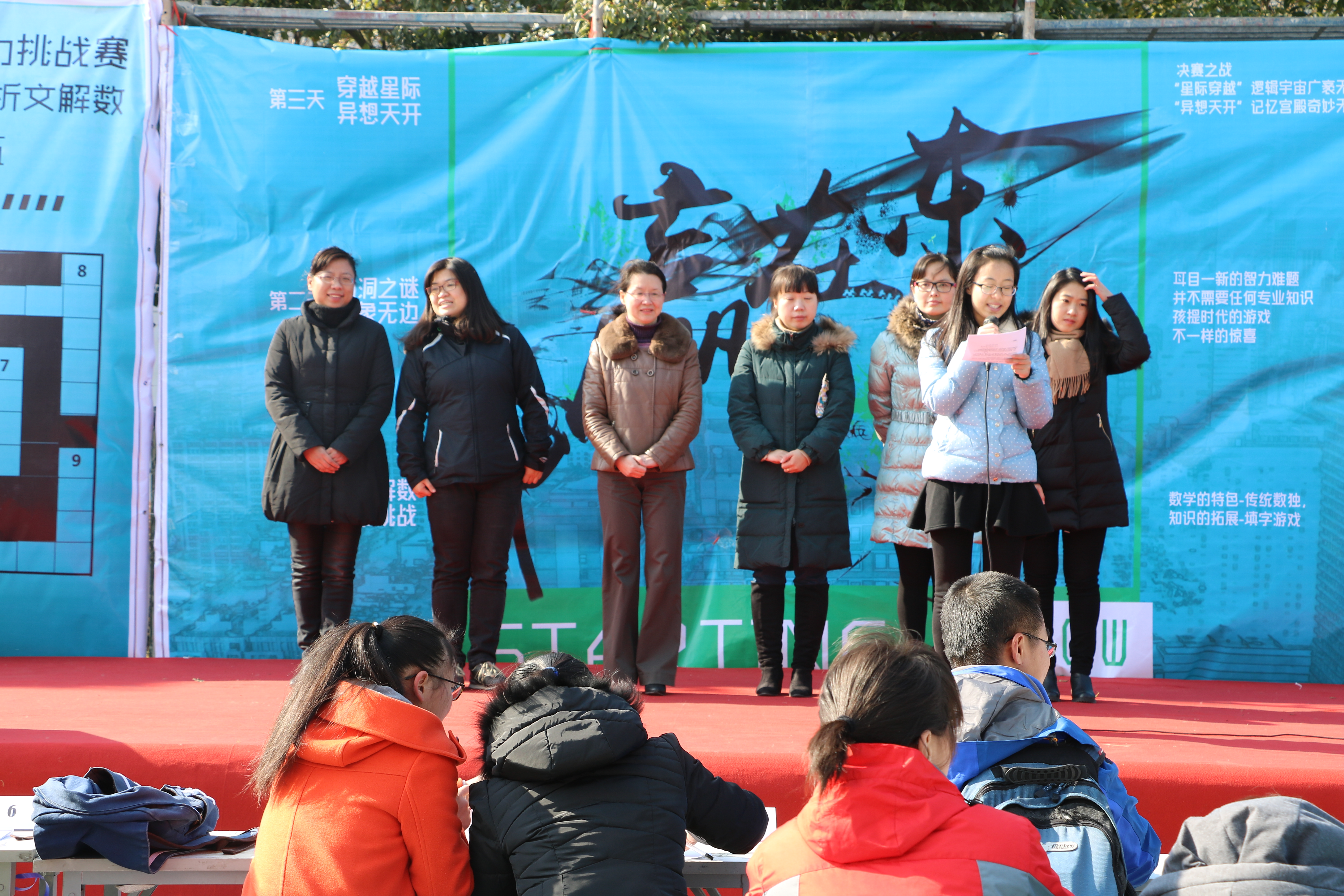 12月18日,由太阳成集团tyc33455cc校团委主办,数学系团委、数学系员工会承办的第七届“赢在东南”校园智力挑战赛在大活广场圆满落幕!挑战赛于12月16日正式来开帷幕,数学系党委书记吴映红老师、校团委副书记张璐老师、数学系党委副书记曹海燕老师、系团委书记袁煜昶老师和班主任陈和老师出席开幕式,并由数学系党委书记吴映红老师宣布开幕。历经三天的角逐,从40支参赛队伍中成功突围8组选手,进入决赛。在激烈的比拼和无限悬念的积分排名争夺后,一支来自数学系大三和大一年级的团队最终拔得头筹。