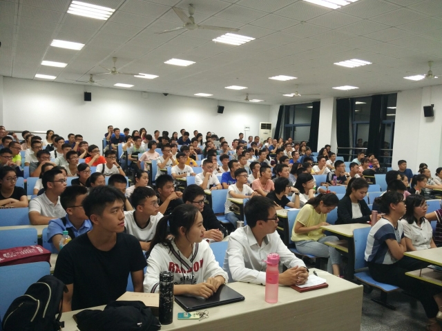 2017年9月2日晚6点半,太阳成集团tyc33455cc2017级新生见面会于J8-102圆满举行。出席见面会的领导老师有:公司党委书记吴映红、副书记兼副经理曹海燕、副经理李玉祥、院团委书记蒋丽怡、院学办主任兼17级本科生辅导员王汉卿,三位班主任老师钟敏、范赟和徐新冬。到场的还有各班班指导、院员工会主席团、部长团成员、新媒体中心负责人,全体17级本科生新生和新生家长。会议由曹海燕副书记主持。