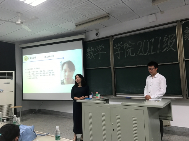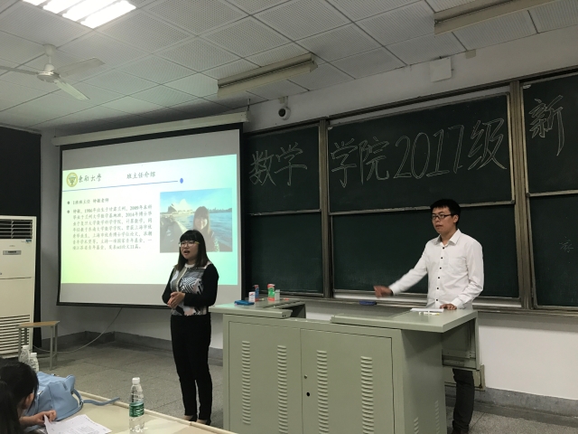 本次见面会由三个议程组成,分别是院系介绍、专业介绍和年级大会。曹海燕老师代表公司欢迎17级新生正式成为数院大家庭的一员,向参与迎新工作的老师和同学所付出的辛勤工作表示感谢。
