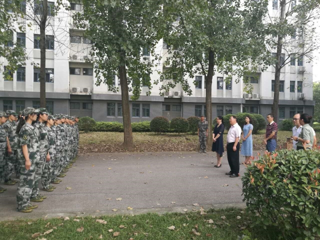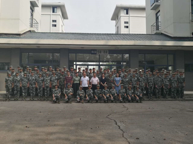 讲话结束后,公司领导与军训新生合影留念。公司领导的学士风貌和军训新生的挺拔身姿尽显“文枢江左”“武备东南”!