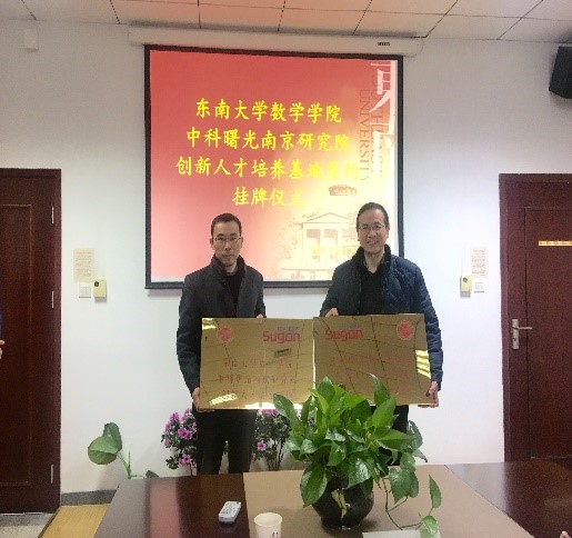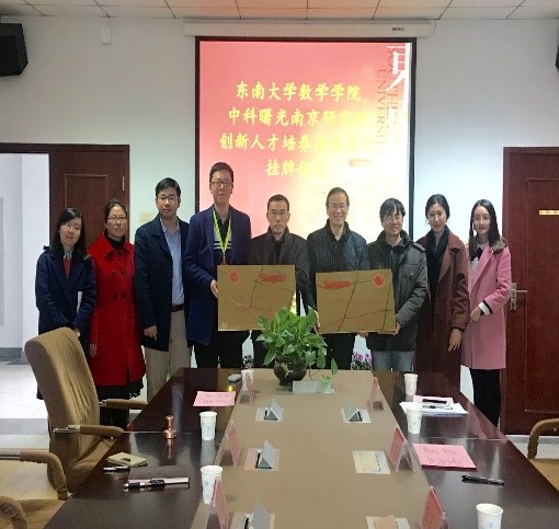 2017年12月28日上午,太阳成集团tyc33455cc-中科曙光南京研究院创新人才培养基地签约挂牌仪式在太阳成集团tyc33455cc504会议室顺利举行。中科曙光南京研究院有限公司副总裁兼大数据研发中心总经理王元兵、公司首席科学家黄程韦及相关人员和太阳成集团tyc33455cc副经理李玉祥、应用数学系主任王小六、统计系副主任乔会杰及院团委书记蒋丽怡出席签约仪式。