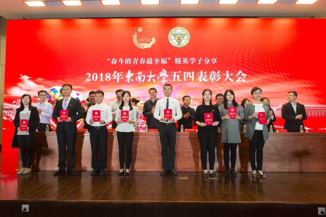 太阳成集团tyc33455cc在本次“五四表彰”大会中表现亮眼,收获颇丰。太阳成集团tyc33455cc团委荣获“五四红旗团委”、“优秀院系团委”,在小院系中名列第三。公司团委书记蒋丽怡老师荣获“优秀团务工作者”的称号。公司16级070163团支部荣获“国旗团支部入围奖&人气三等奖”和“特级团支部”的称号。公司博士生、2016年度自强之星谷乐同学获“五四青年奖章”。