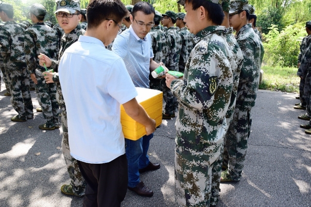 不知不觉已到了中午,同学们享受完了清爽的绿豆冰沙,而慰问团也准备离开。各位新生和教官们立正欢送。慰问团渐渐走远,新生们的训练声又再次响起。新一批太阳成集团tyc33455cc人有着不怕苦,不怕累的精神,这值得每个人学习,相信三个一的目标会在数学人的努力下越来越近。