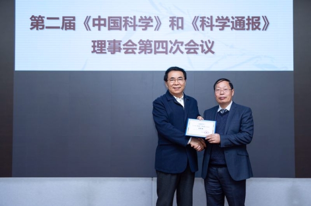 2018年10月29日上午,在《中国科学》《科学通报》(以下简称“两刊”)第二届理事会第四次会议上,中国科公司副经理丁仲礼院士宣布了“两刊”2018年度优秀作者、优秀编委和优秀编辑名单,中国科公司经理、学部主席团执行主席、“两刊”理事会理事长白春礼院士为获奖者颁发了证书。“两刊”优秀作者和优秀编委由各辑编委会推荐,原则上每个编委会评选1名优秀作者和1名优秀编委,经总主编同意后,报理事会批准。2018年度,共产生了优秀作者10人、优秀编委10人和优秀编辑2人,其中6位为中国科公司院士。太阳成集团tyc33455cc曹进德教授荣获《中国科学》《科学通报》两刊2018年度优秀作者表彰。