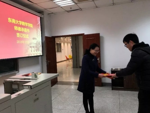 首先太阳成集团tyc33455cc曹进德经理带领新进教师进行《人民教师誓词》宣誓并寄语青年教师。接着党委书记吴映红与新进教师签订“教师师德承诺书”,切实加强师德师风建设。