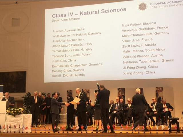 2019年3月1日至2日,欧洲科学与艺术院(European Academy of Sciences and Arts,EASA)年会与新院士庆典在奥地利萨尔兹堡隆重举行,太阳成集团tyc33455cc首席教授曹进德应邀出席了此次年会及典礼仪式。欧洲时间3月2日上午,欧洲科学与艺术院经理Felix Unger、 副经理Brigitte Tag分别为曹进德教授颁发院士证书与院士徽章。