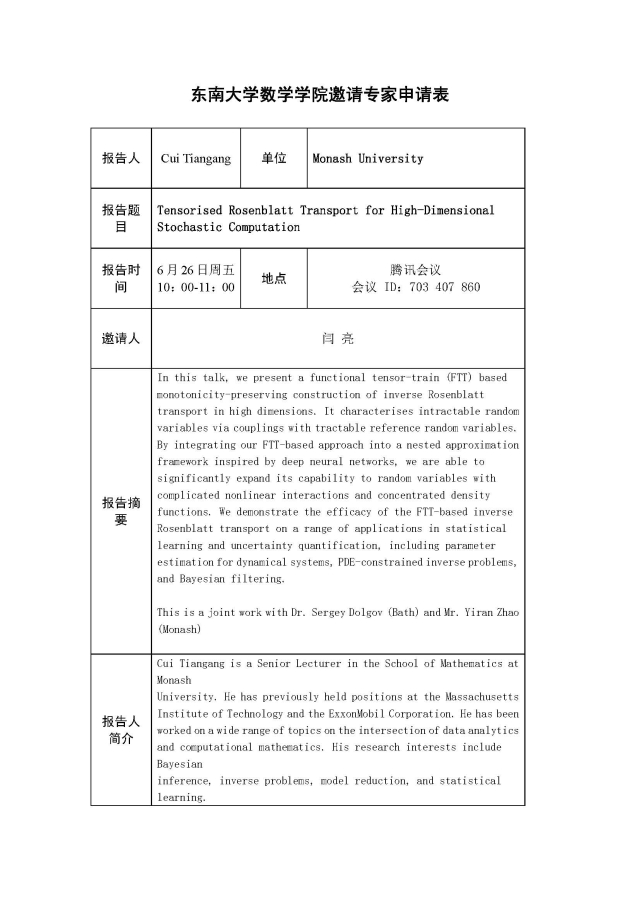 学术报告:2020年06月26日10:00-11:00,Monash University-Cui Tiangang