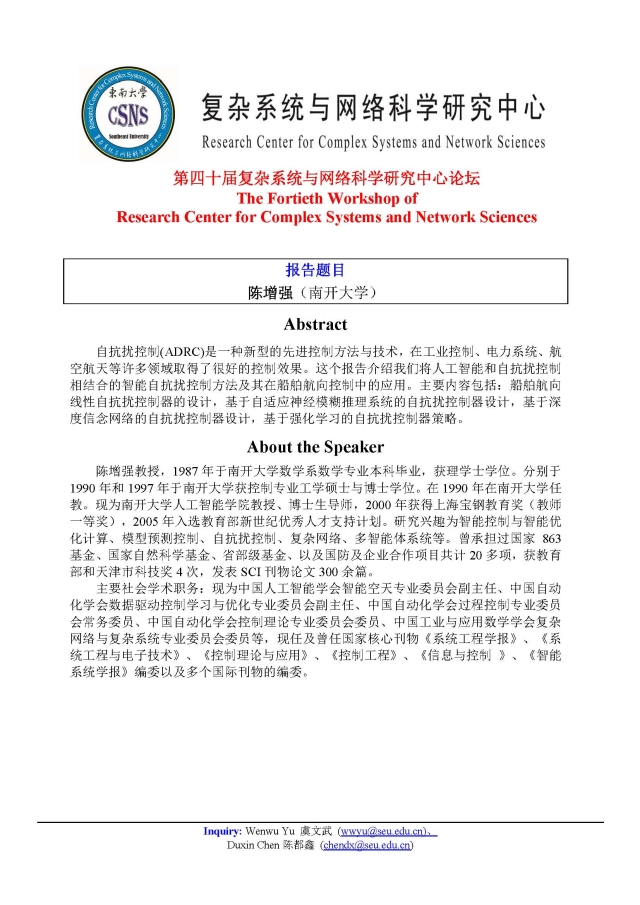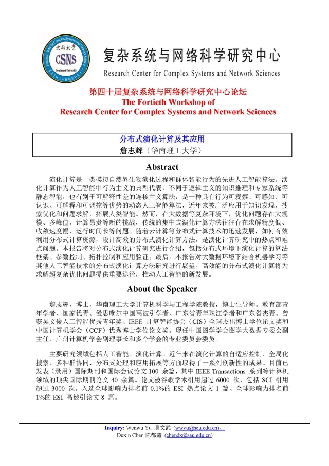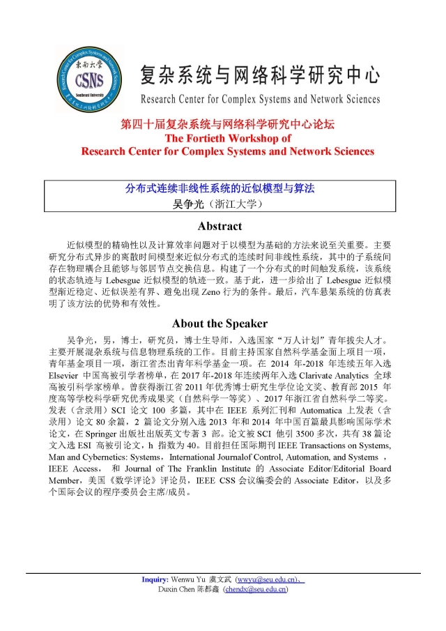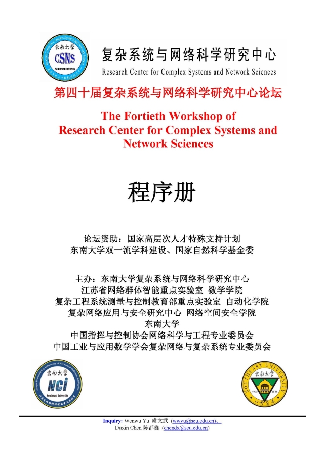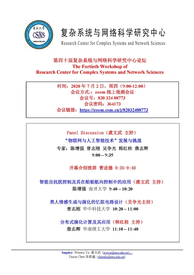 学术论坛:2020年07月02日09:00-12:00,第四十届复杂系统与网络科学研究中心论坛