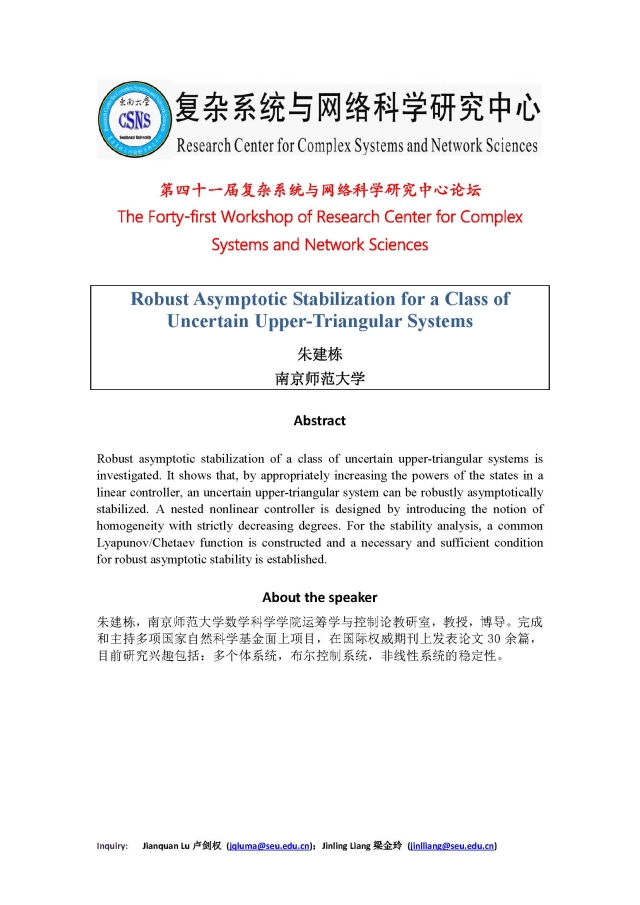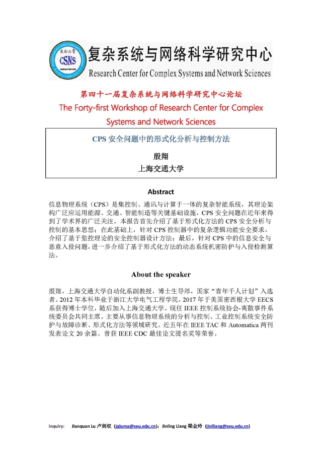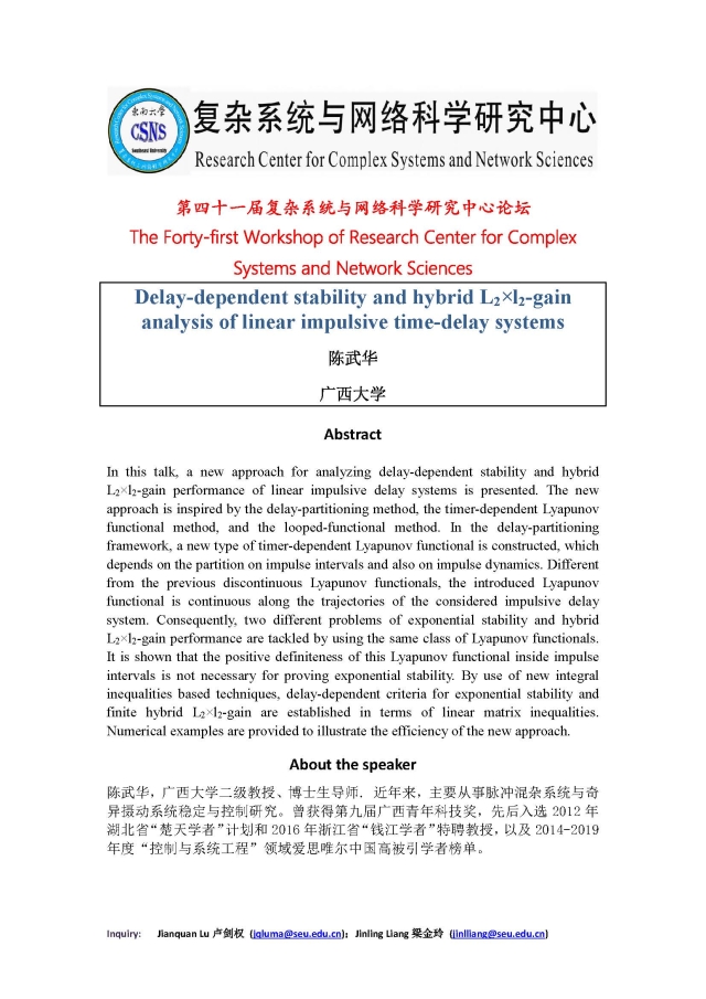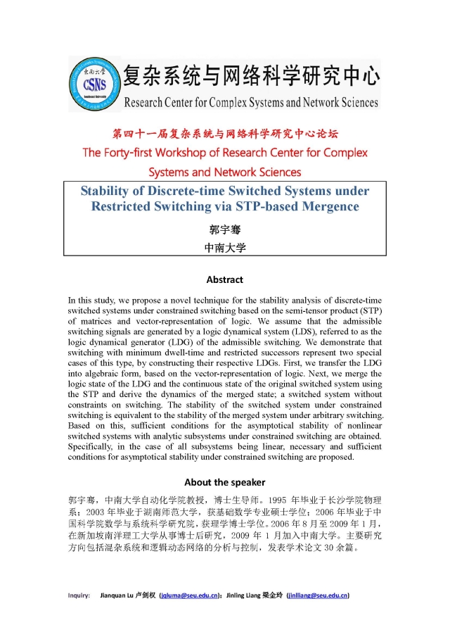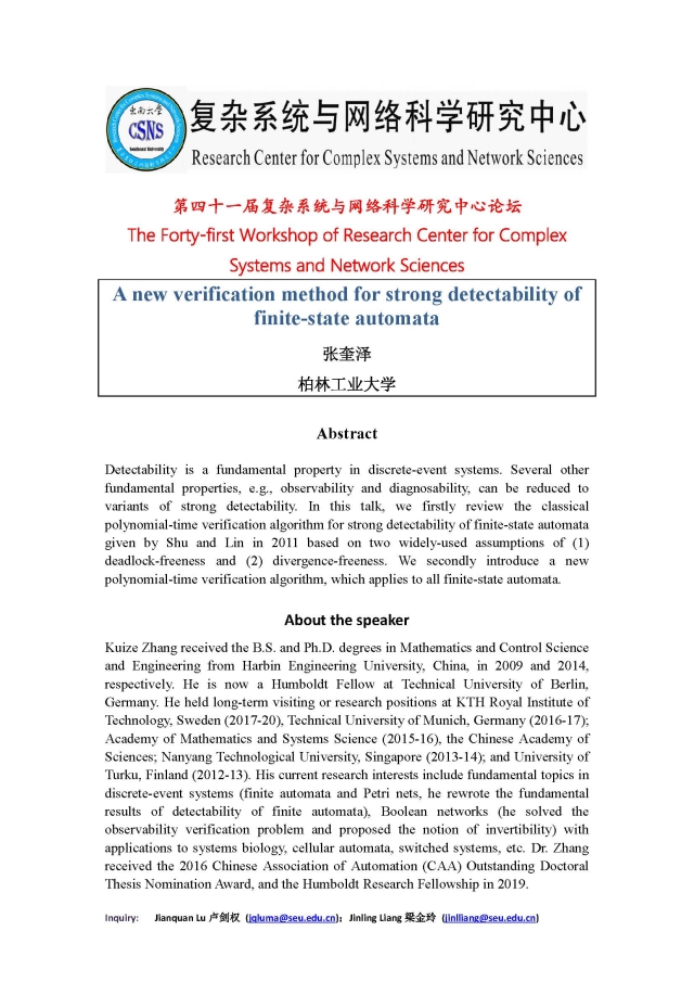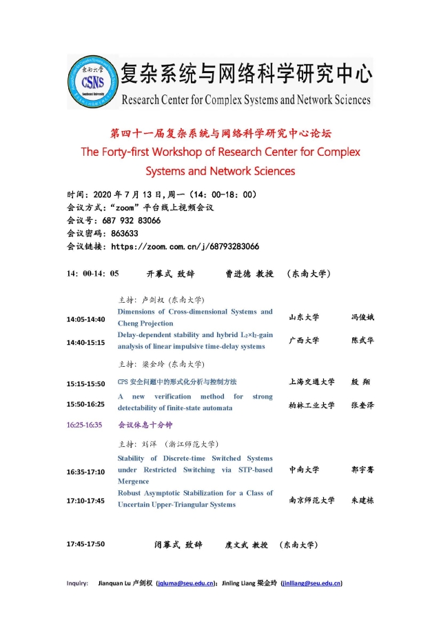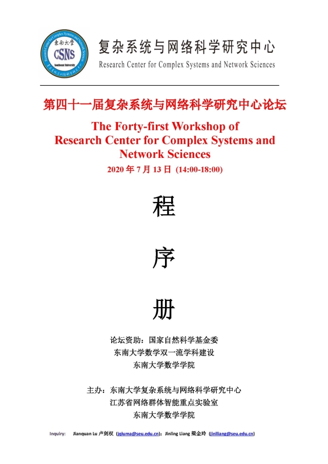 学术论坛:2020年07月13日,第四十一届复杂系统与网络科学研究中心论坛