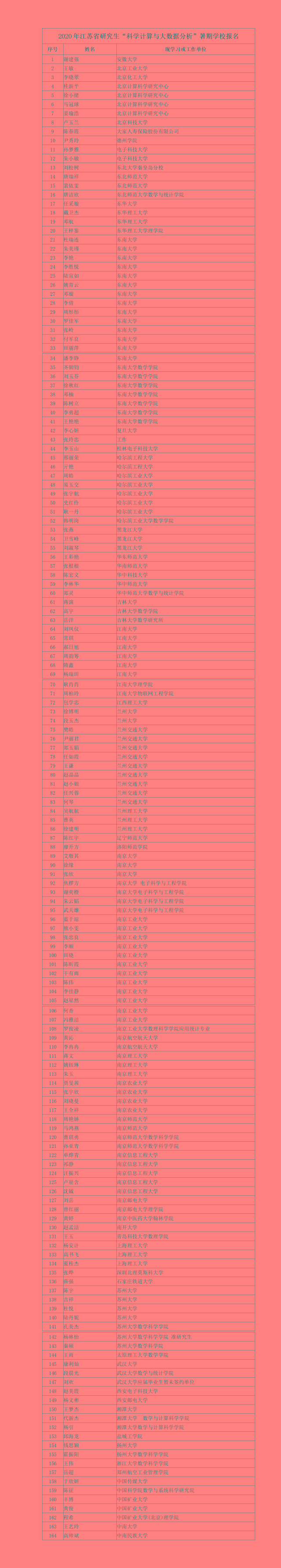 经审核,江苏省研究生暑期公司“科学计算与大数据分析”录取学员名单详见下表。请各位学员加入课程学习QQ群: