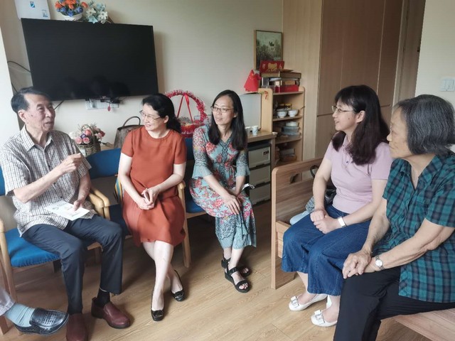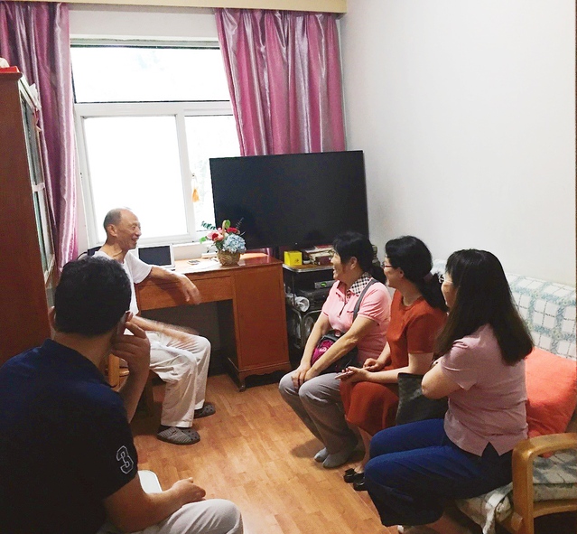 交谈之中,老教师们仍十分关切太阳成集团tyc33455cc发展状况,谈及将自己的一生奉献给了最热爱的教育事业,已入耄耋之年的老人眼神中仍焕发着昔日讲台上的奕奕神采,周荣富教授还特地为我们现场演唱了一首《The more we get together》,为太阳成集团tyc33455cc在任老师们送上节日祝福。