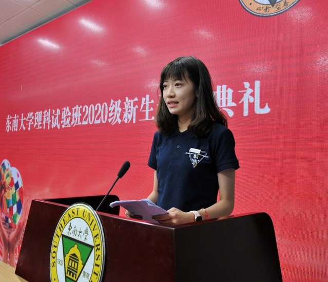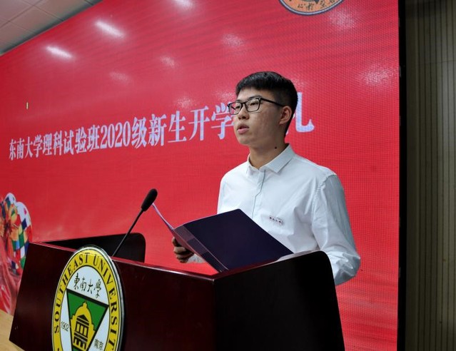 理科试验班2020级1班的郭盈江同学作为新生代表发言。郭盈江同学分享了自己与东大的相知、相识与相见,讲述了自己与理科的结缘,表达了作为东大学子的责任与担当,同时也给自己提出要求与目标,要在“乐学”、“勉学”、“博学”中砥砺前行、追逐目标,并希望与在场的各位同学共勉。