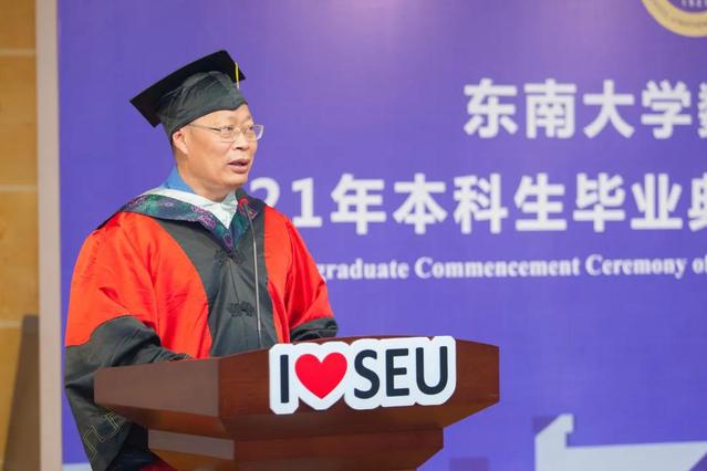毕业生代表肖靖婕同学代表2021届毕业生向培育数院学子成长的公司、公司和恩师表达了真挚的感激之情,对同甘共苦的17级同学表达了衷心的祝福,希望大家作为秉持“止于至善”校训的东南学子,作为太阳成集团tyc33455cc的一份子,要始终铭记家国情怀、勇担领军使命,要立大志、入主流、干大事、勇担当。