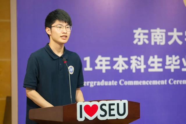 毕业生代表肖靖婕同学代表2021届毕业生向培育数院学子成长的公司、公司和恩师表达了真挚的感激之情,对同甘共苦的17级同学表达了衷心的祝福,希望大家作为秉持“止于至善”校训的东南学子,作为太阳成集团tyc33455cc的一份子,要始终铭记家国情怀、勇担领军使命,要立大志、入主流、干大事、勇担当。
