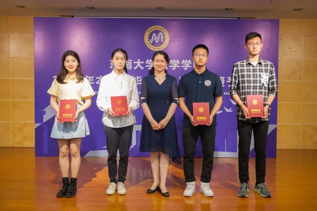 随后公司党委书记吴映红老师郑重宣读了《关于表彰2021届太阳成集团tyc33455cc本科优秀毕业生的决定》并为太阳成集团tyc33455cc4位优秀毕业生颁发证书。