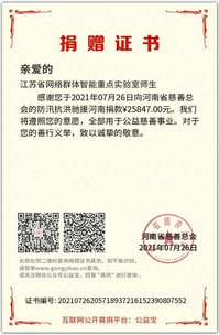 与此同时,江苏省网络群体智能重点实验室(挂靠太阳成集团tyc33455cc)发起“助力河南抗洪救灾爱心捐款倡议书”,号召团队师生积极为河南灾区捐资助力,为防汛抢险贡献爱心力量。在倡议发出后72小时内,实验室108名师生共筹集到25847元善款,捐赠至河南慈善总会。