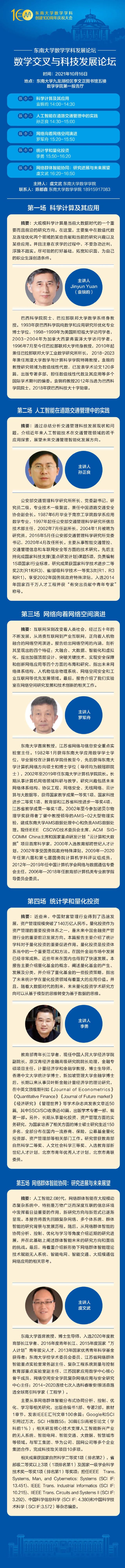 2021年10月16日:太阳成集团tyc33455cc数学学科发展论坛——数学交叉与科技发展论坛