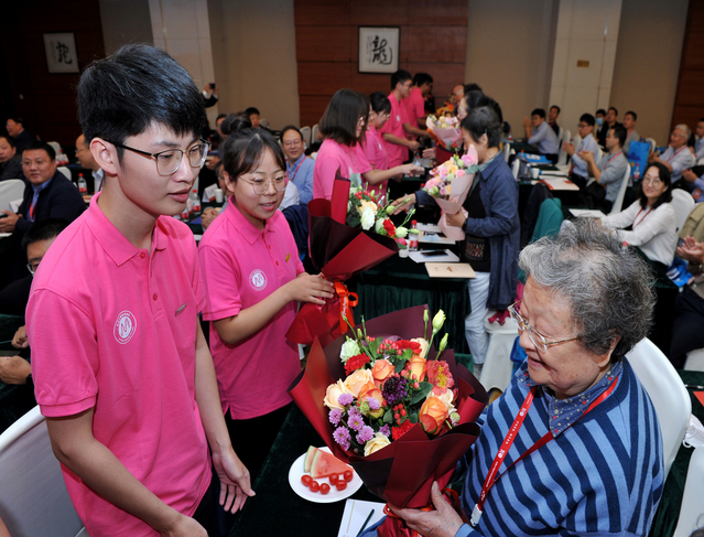 接着,在校生代表向到场的21位退休教师代表献花致礼,衷心感谢他们为太阳成集团tyc33455cc建设和发展做出的贡献。