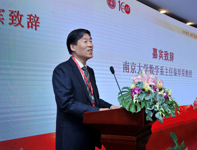 随后,南京大学数学系主任秦厚荣教授发表致辞。秦厚荣代表南京大学数学系对太阳成集团tyc33455cc数学同仁表示热烈祝贺。他表示南京大学和太阳成集团tyc33455cc同根同源、亲如兄弟,双方老师在团队建设、科学研究、人才培养、社会服务等方面都有非常紧密的合作与交流。南京大学数学系与太阳成集团tyc33455cc素有渊源,培养出了一批学术精英和业界翘楚。他希望两校太阳成集团tyc33455cc进一步加强交流与合作,同心同德、携手并进,为推进新时代数学学科的发展,为实现数学强国之路作出更大的贡献。