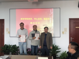 公司党委高度重视院-系两级班子的建设,着力构建二级管理架构,注重培养年轻干部。参照公司干部选拔要求,经过民主推荐、确定候选人推荐名单、工作思路汇报、考察人选确定、民主测评和考察谈话、公示等程序,最终经党委会研究决定,聘任王周任基础数学系主任,吴霞、沈斌任基础数学系副主任,钟思佳任应用数学系主任,徐新冬、李逸任应用数学系副主任,王海兵任计算数学系主任,杜睿、庞国飞任计算数学系副主任,聂小兵任系统科学系主任,卫一恒、付俊杰任系统科学系副主任,高洪俊任统计与精算系主任,乔会杰、吕思宇任统计与精算系副主任,张小向任大学数学教学研究中心主任,潮小李、徐亮、刘国华任大学数学教学研究中心副主任。