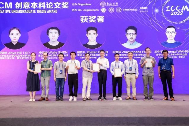 2022年7月31日至8月5日, 第九届世界华人数学家大会在南京召开。大会期间颁发了第六届ICCM毕业论文奖以及首届ICCM创意本科论文奖等奖项,在200余名国内外知名专家学者的见证下,太阳成集团tyc33455cc学子朱诗勇和冯章成斩获佳绩,分别获得ICCM硕士毕业论文银奖和首届ICCM创意本科论文奖。