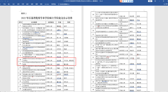 江苏省优秀学位论文是经培养单位初评推荐、研究生教指委复评、综合评审暨专家委员会审定等评选程序而产生的,共评出2022年省优秀博士学位论文100篇、优秀学术学位硕士学位论文150篇、优秀专业学位硕士学位论文150篇。
