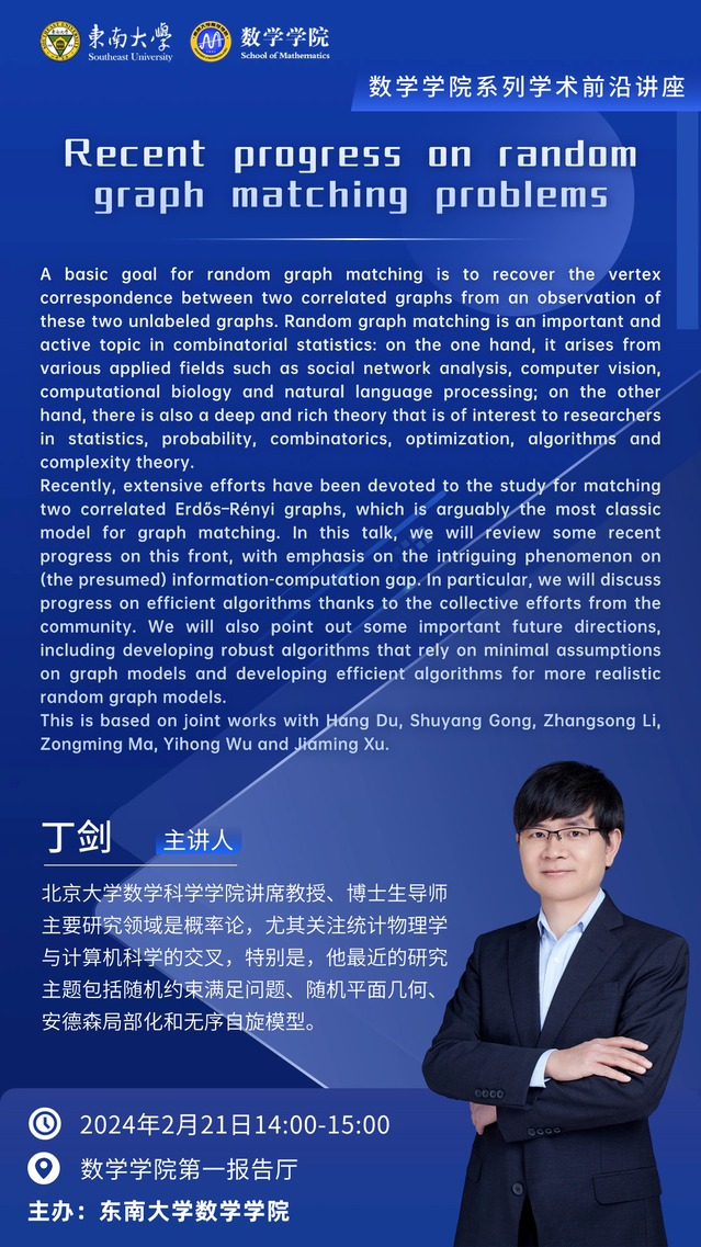学术报告:2024年2月21日(三)14:00-15:00-北京大学-丁剑