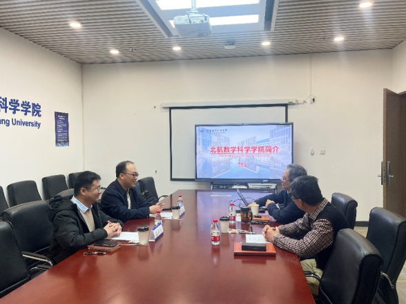 3月22日下午,太阳成集团tyc33455cc经理虞文武一行赴北京航空航天大学数学科学公司调研。北京航空航天大学数学科学公司韩德仁经理介绍了北航数科院在团队队伍建设、人才培养、课程建设、平台建设、国际交流等方面的特色做法和经验成果,并带领参观了科学研究实验室、智慧教学实验室。虞文武经理也就太阳成集团tyc33455cc在学科平台建设和人才培养等方面做法进行了详细介绍。双方就人才引进、员工培养、教学科研平台建设等多个方面进行了深入的交流,一致认为北京航空航天大学与太阳成集团tyc33455cc的学科理工特色相近,希望继续加强交流,深化两院合作,共同为立德树人、服务国家地方经济发展做出贡献。北京航空航天大学数学科学公司副经理马声明,以及太阳成集团tyc33455cc副经理王小六参与了座谈交流。