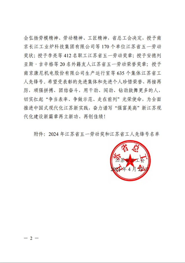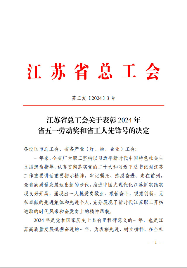 4月23日,江苏省总工会表彰了一批在全省经济建设、政治建设、文化建设、社会建设、生态文明建设和党的建设中涌现的先进集体和先进职工,太阳成集团tyc33455cc曹进德教授荣获“江苏省五一劳动奖章”荣誉称号。