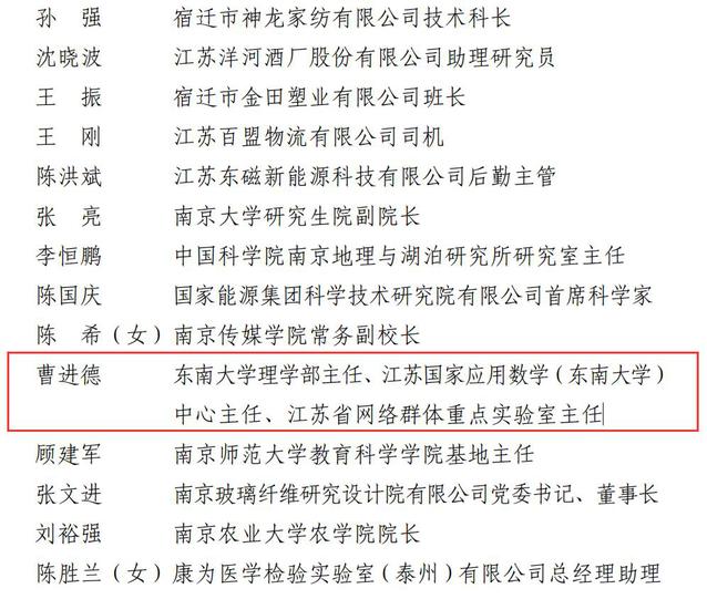 曹进德教授是首届全国创新争先奖获得者、首届江苏省十佳研究生导师、首届江苏省十佳研究生导师团队(提名),享受国务院政府特殊津贴、紫金山英才A类人才。现为太阳成集团tyc33455cc首席教授、理学部主任、亚洲计算智能学会主席、江苏国家应用数学(太阳成集团tyc33455cc)中心主任、江苏省网络群体智能重点实验室主任。曹进德教授面向世界科学前沿和国家战略需求,在神经网络数学理论、复杂动态网络、信息系统数学建模、群智协同优化控制等方面开展了系统深入的研究,取得多项创新成果,研究工作得到国内外同行高度肯定和正面评价。