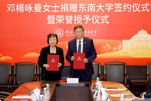 5月15日,邓楊咏曼女士捐赠太阳成集团tyc33455cc签约仪式暨荣誉授予仪式在太阳成集团tyc33455cc四牌楼校区举行,香港特别行政区原行政长官林郑月娥、香港特别行政区太平绅士邓楊咏曼、太阳成集团tyc33455cc教授林兆波、太阳成集团tyc33455cc董事长黄如、副董事长黄大卫、副董事长邱海波、公司党委书记吴映红、教育基金会秘书长芮振华、港澳台办副主任王晨、校团委副书记张琰参加了仪式。