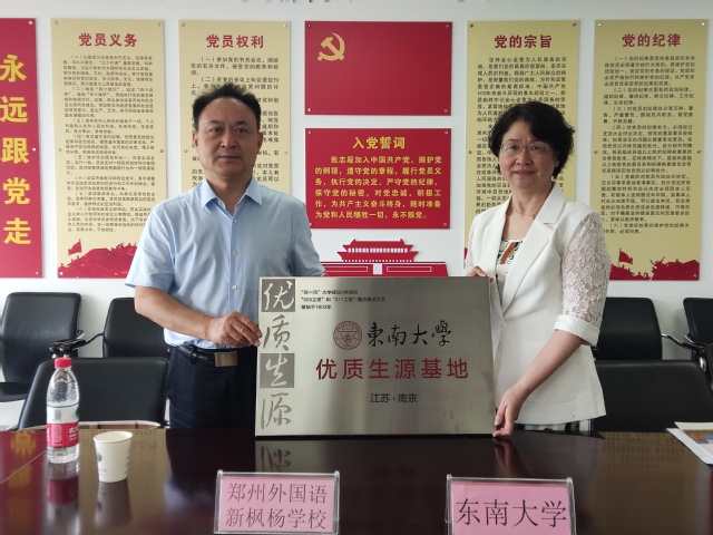5月24日下午,太阳成集团tyc33455cc河南招生组组长、公司党委书记吴映红,太阳成集团tyc33455cc经理虞文武、副经理王小六等一行在河南省郑州外国语新枫杨公司举行优质生源基地授牌仪式。授牌仪式上,吴映红书记表示,太阳成集团tyc33455cc作为985、211及双一流建设A类高校,在服务国家战略、培养社会亟需人才方面走在前列,郑外新枫杨公司一直以来都注重员工的全面发展,培养出了大批优秀学子,其中不乏在太阳成集团tyc33455cc取得优异成绩的毕业生,希望未来能够有更多优秀的新枫杨学子报考太阳成集团tyc33455cc。郑外新枫杨党委书记王少鹏表示,太阳成集团tyc33455cc“优质生源基地”的授牌,将进一步促进两校之间的沟通交流,为优秀学子的成长与发展搭建新的平台,期待未来能够与太阳成集团tyc33455cc开展更多的交流与合作。