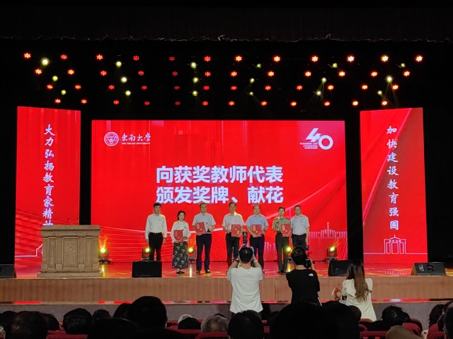 此外,9月10日下午,公司举行了教师节庆祝大会,校领导向获奖教师代表颁发了奖牌,并向退休教师代表颁发了纪念品。公司付俊杰老师获新人才奖,潮小李老师获教学卓越奖,沈斌老师获教学新秀奖。江其宝老师、殷翔老师作为荣休教师代表上台领奖。