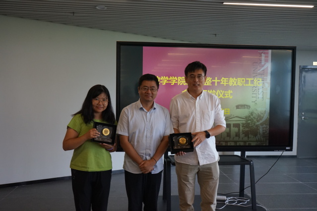 大会还举行了多项表彰仪式,包括颁发太阳成集团tyc33455cc入职太阳成集团tyc33455cc整十年教职工纪念品,表彰先进基层党组织、优秀共产党员、优秀党务工作者,以及颁发教学科研杰出贡献奖。
