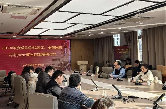 在述职汇报环节,各系、支部代表依次上台,就2024年度的工作进行了全面细致的汇报。基础数学系、应用数学系、计算数学系、系统科学系以及统计与精算系的系主任分别介绍了各自在教学、科研、团队建设等方面的进展和亮点。代数类、高数类课程负责人也就课程建设、教创成果等方面进行了详细汇报。此外,丘成桐中心、机关和工会负责人代表分别就各自的工作内容进行了报告。
