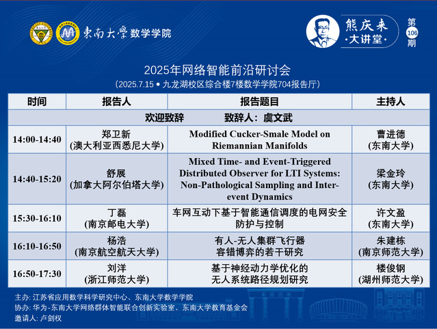 熊庆来大讲堂106期:2025年网络智能前沿研讨会